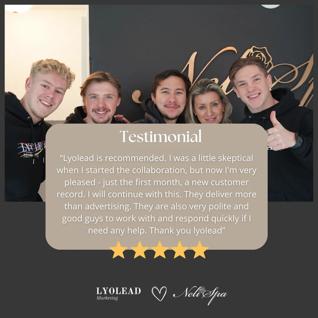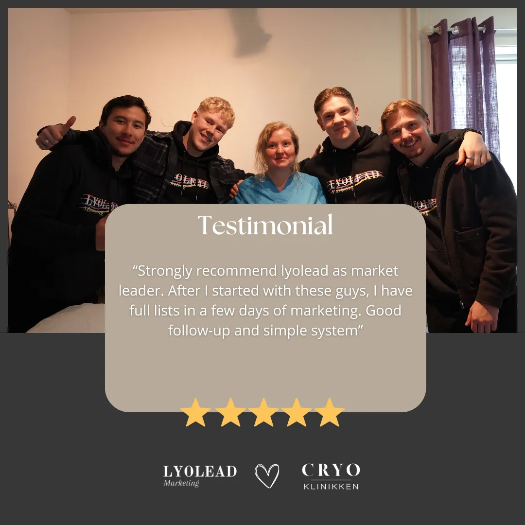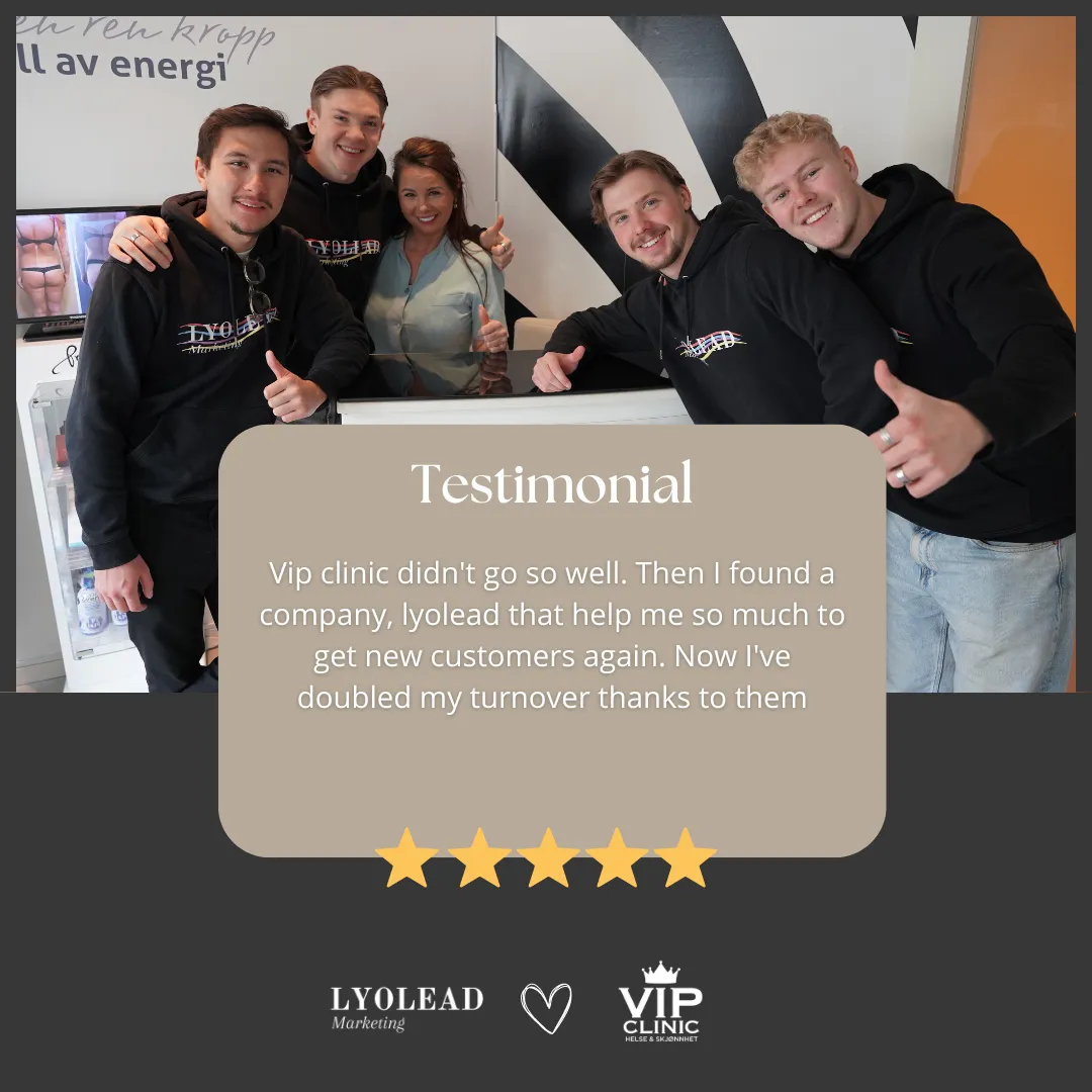 "Lyolead saved our clinic. As a newly started clinic during the third corona outbreak, bankruptcy was close. We were advised by another clinic to contact Linus at Lyolead. In two weeks the schedule was full and the clinic was saved. I highly recommend Lyolead. Anyone who says otherwise is lying!"